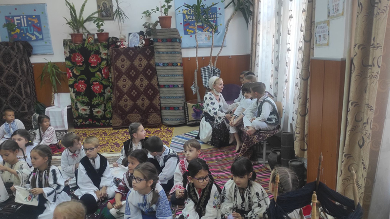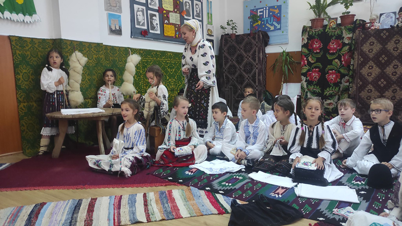 Copiii au fost îmbrăcați în costume tradiționale, au tors lână la fus, au spus glume, ghicitori și au cântat. ,,Am învățat despre tradițiile bunicilor și străbunicilor noștrii și mi-a plăcut că m-am îmbrăcat în portul românesc autentic”, a menționat, încântată, eleva Maria Floriii, de la clasa pregătitoare E.