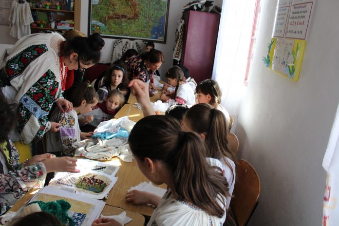Șezătoare, în Parohia Strâmtu – Protoieria Târgu-Jiu! Tinerele fete au învățat să coase o ie tradițională românească