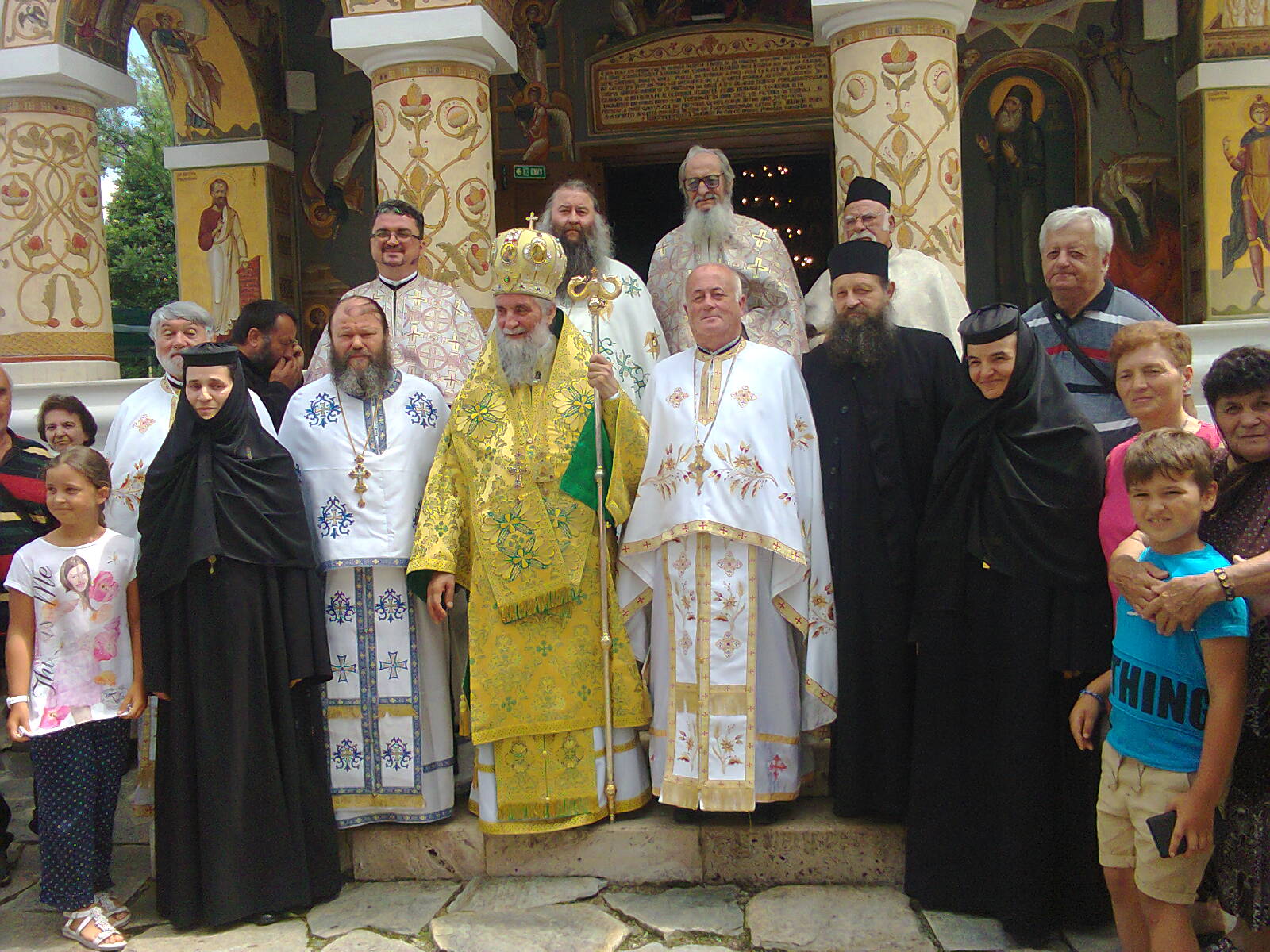 Luni, 24 iunie 2019, de Sărbătoarea Naşterea «Sfântului Ioan Botezătorul», numită în popor «Sânzienele» sau «Drăgaica», la Sfânta Mănăstire «Icoana», din Comuna Crasna, Protopopiatul Târgu- Cărbuneşti, a fost săvârşită Sfânta Liturghie Arhierească de către Înaltpreasfinţitul Părinte dr. Irineu Popa, Arhiepiscopul Craiovei şi Mitropolitul Olteniei, împreună cu un ales sobor de preoţi şi diaconi, din care au făcut parte Preacuviosul Părinte Exarh, Ioachim Pârvulescu, Stareţul Mănăstirii Lainici, Preacucernicul Părinte Protopop al Protopopiatului Târgu-Cărbuneşti, Pr. Iulian Mărgineanu şi Preacucernicul Părinte Protopop, Pr. Ion Popescu, slujitor de altar la Biserica «Icoana» din Bucureşti! Mare păcat, că spre deosebire de anii anteriori, când curtea mănăstirii era plină de câteva sute de oameni, de această dată au fost prezenţi mai puţini credincioşi, chiar dacă a fost o zi considerată pentru unii oameni ca fiind lucrătoare, poate mai mult în cele lumeşti, decât în cele dumnezeieşti! Prin cuvinte de mulţumire adresate lui Dumnezeu, cei doi protoierei, ca şi Preacuviosul Părinte Arhimandrit au subliniat că Sărbătoarea Naşterii Sfântului Ioan Botezătorul are un temei biblic şi unul aparte duhovnicesc, pentru că este consemnată de către Sf. Ev. Luca în Evanghelia Sa, deoarece a marcat un moment petrecut cu şase luni înainte de Naşterea Domnului nostru Iisus Hristos, ca un eveniment ce apare ca fiind atestat documentar în secolele IV-V, când se fixează definitiv şi data Crăciunului, mai ales că sărbătoarea a fost instituită pentru a înlocui sărbătorile păgâne, cu caracter agricol sau naturist, din apropierea solstiţiului de vară (22-23 iunie). Vorbitorii au subliniat frumuseţea deosebită a locului în care a fost aşezată această mănăstire şi credincioşia oamenilor comunei Crasna de sub munte. A fost prezent la sfânta slujbă şi domnul jurist, Ciprian Adrian Florescu, Prefectul Gorjului.