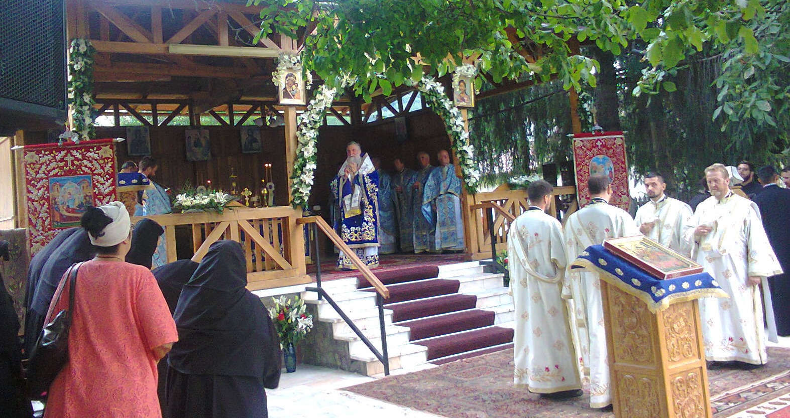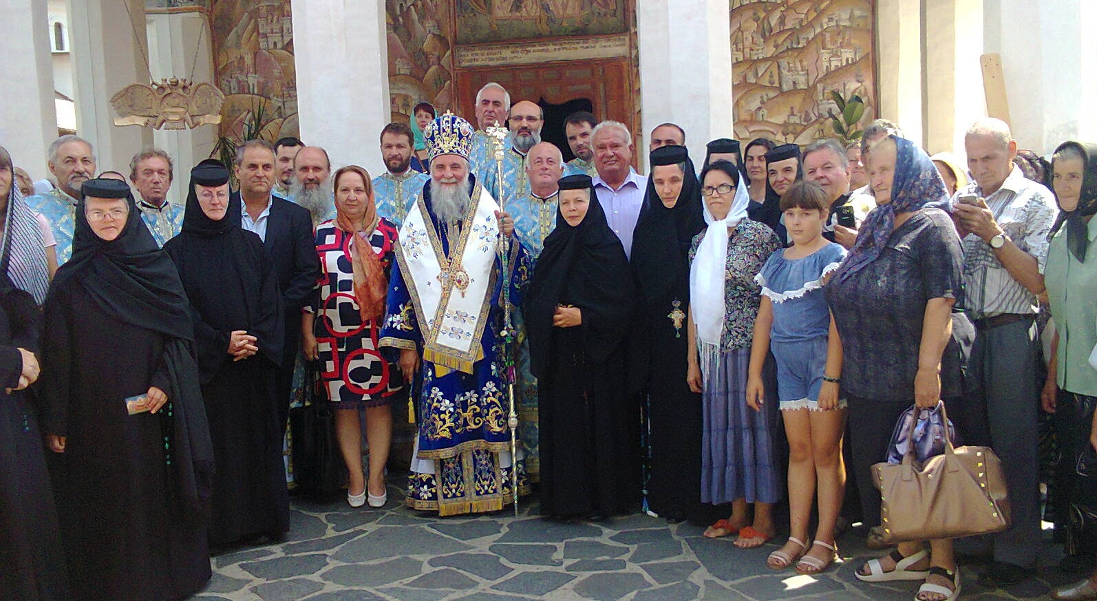 La Sărbătoarea lavrei de la Cheile Olteţului, de Hramul «ADORMIREA MAICII DOMNULUI», în ziua de joi, 15 augus 2019, în prezenţa a câteva sute de credincioşi, Înaltpreasfinţitul Părinte acad. dr. IRINEU, Arhiepiscopul Craiovei şi Mitropolitul Olteniei, a oficiat Sfânta Liturghie în altarul de vară al sfântului lăcaş, din apropierea bolniţei mănăstirii, împreună cu un ales sobor de arhierei, preoţi şi diaconi, printre care s-au numărat: Preacucrernicul Părinte Protopop, Pr. Iulian Mărgineanu, Protopopiatul Târgu-Cărbuneşti, Preacuviosul Părinte Arhimandrit Vitalie Danciu, Stareţul Mănăstirii «Sf.Ioan Gură de Aur» Cojani (Măceşani), Preacucernicul Părinte Pr. Gheorghe Cioiu, Paraclisul Mitropolitan «Sfânta Treime» din Craiova, Preacucernicul Părinte Pr. Mihai Roibu, Paraclisul Mitropolitan «Sfinţii Voievozi Mihail, Gavriil şi Rafail» din Târgu-Jiu şi alţii. Au mai participat la sfânta slujbă: Maica Stareţă Miriam Link, Stavrofora, de la Paraclisul Mitropolitan «Toţi Sfinţii» din Craiova, Maica Stareţă a Mănăstirii Polovragi, Spiridona Tăbăcaru Stavrofora, Maica Stareţă a Mănăstirii «Icoana», Teodora Ilie Stavrofora, Maica Stareţă a Mănăstirii Târgu-Logreşti, Fevronia Nuţă Stavrofora, precum şi alte măicuţe ostenitoare ale sfântului lăcaş monahal de la poalele Muntelui «Piatra Polovragilor», la care putem adăuga numele unor cunoscuţi mireni dragi ai inimilor noastre, unul dintre aceştia însemnând numele domnul prof. Ştefan Stăiculescu, venit împreună cu un grup de prieteni credincioşi de pe meleagurile Vâlcii.