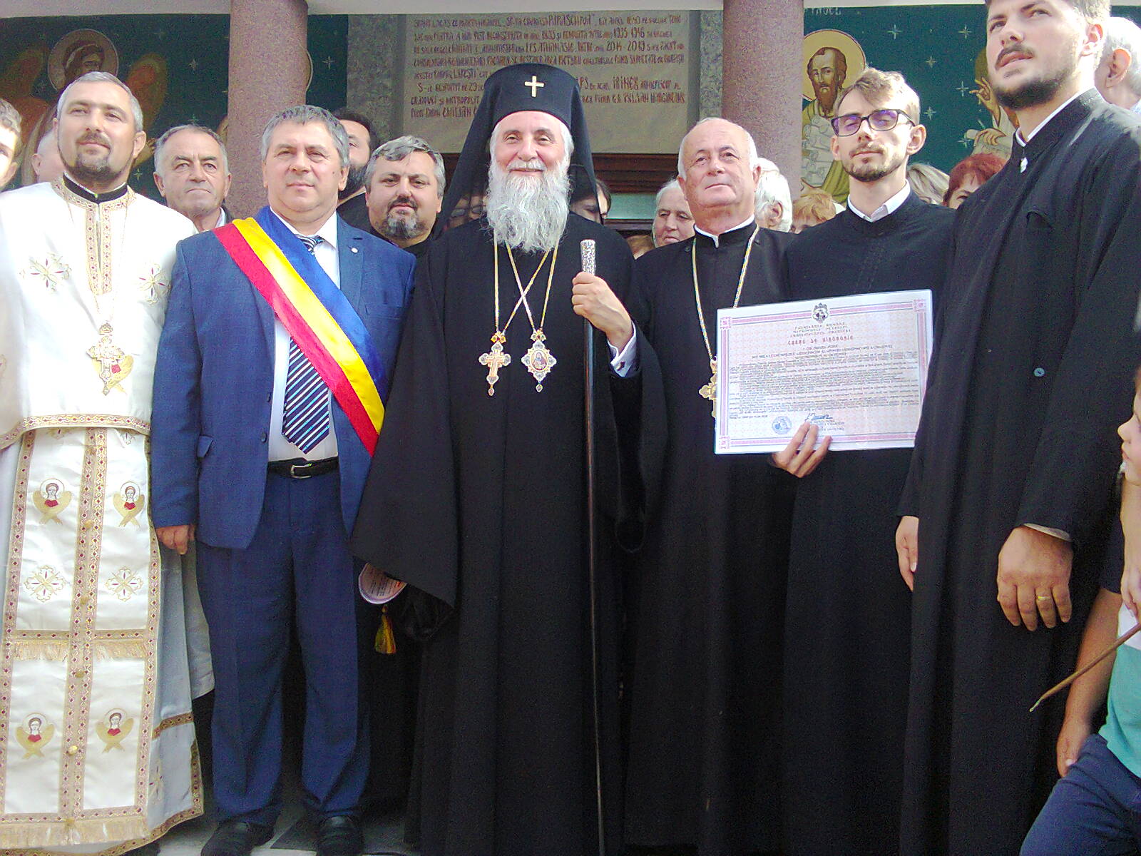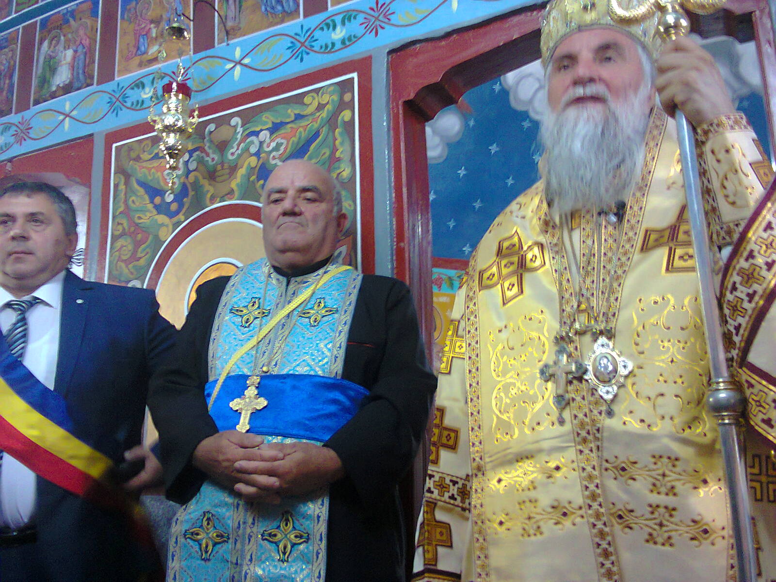 Faptele bune! Faptele milosteniei, ca să nu ne lăsăm duşi de ispita diavolului cu amânarea! Cel mai mare păcat şi cea mai eficientă «armă» a diavolului este amânarea! Amânăm pocăinţa, amânăm spovedania, amânăm Împărtăşania, şi deodată ne trezim la sfârşitul vieţii, când uităm ceea ce am făcut, când cel rău ne dă amorţeală trupului şi sufletului! De aceea, să ne întoarcem la Dumnezeu şi să-I cerem iertare! Să lucrăm cât este ziuă, că vine noaptea, când nimeni nu mai poate lucra! Să facem fapte bune, ca să-L avem în sufletul nostru pe Mântuitorul Iisus Hristos, pentru că El poartă de grijă de sufletul nostru şi de viaţa noastră! Avându-L pe Domnul, nu ne înfricoşăm niciodată, pentru că El ne izbăveşte de cel viclean! Să îndepărtăm din viaţa noastră drăcuielile, înjurăturile, judecăţile, bârfele, cuvintele de ocară, pentru că toate acestea sunt «îndemnuri» ale diavolului, iar de toate cele bune şi cele rele, vom vedea la judecata de înaintea Domnului! Pentru această muncă pe care dumneavoastră aţi depus-o, fiind în legătură cu strămoşii, de la 1600 şi mai demult, până astăzi, aţi alcătuit împreună familia acestei parohii! Strămoşii sunt prezenţi în pomelnicele noastre, sunt prezenţi în cer şi aici, pe pământ! Unde este Dumnezeu, sunt şi strămoşii noştri! Rugăm pe Bunul Dumnezeu ca să-i aşeze pe înaintaşii noştri în «ceata» drepţilor din ceruri, iar pe cei care aţi contribuit la înfrumuseţarea acestei biserici, Dumnezeu să vă dea însutit şi înmiit! Felicităm pe toţi cei care aţi participat la această lucrare Dumnezeiască, rugăm pe Bunul Dumnezeu să vă dăruiască pace, bucurie şi mult spor duhovnicesc, Amin”!