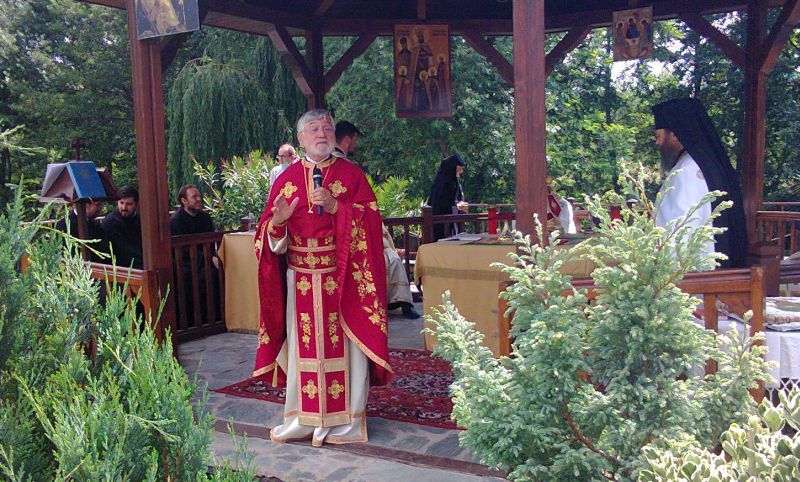La rândul său, după ce le-a mulţumit soborului de preoţi şi diaconi, tuturor maicilor ostenitoare ale obştei monahale pentru împreuna slujire şi după ce s-a adresat cu mulţumire credincioşilor participanţi la sfânta liturghisire a hramului mănăstirii, în cuvântul de aleasă şi profundă învăţătură duhovnicească, Preacuviosul Arhimandrit, Ioachim Pârvulescu a împărtăşit celor prezenţi multe lucruri de o mare frumuseţe teologică şi duhovnicească, iar, din motiv de spaţiu tipărit, redăm, astăzi, doar prima parte a unei «lecţii de viaţă» impresionante, în care Preacuvioşia sa a început prin a spune: ,,Suntem în postul Sfinţilor Apostoli Petru şi Pavel, al patrulea post mare de peste an, din anul calendaristic, de aceea, îi sărbătorim pentru ceea ce au făcut aceşti Apostoli pentru încreştinarea oamenilor! Iată că în acest post cade şi Naşterea Sf. Ioan Botezătorul, omul cel mai mare născut din femeie, aşa cum l-a numit Mântuitorul nostru Iisus Hristos. Adică, e cel mai sfânt om, cum nu a mai fost altul de când este pământul acesta! Se ştie că în biserica noastră, Îl cinstim, Îl adorăm pe Dumnezeu, îi venerăm pe sfinţi! Noi ne închinăm la Sfânta Treime, Tatăl, Fiul şi Duhul Sfânt, cea nedespărţită, după aceea, o supracinstim pe Maica Domnului, cea de-a patra după Sfânta Treime, cea care a depăşit sfinţenia de pe pământ, datorită smereniei sale, a virtuţilor nenumărate pe care le-a avut Maica Domnului! După Maica Domnului, Sf. Ioan Botezătorul este cel mai mare sfânt, pentru că vedem în «Icoana de Issis» pe Mântuitorul, cu Maica Domnului în dreapta Sa şi pe Sf. Ioan Botezătorul în stânga Sa. Această icoană ne arată că Sf. Ioan Botezătorul are o mare trecere înaintea Lui Dumnezeu, cea mai mare trecere faţă de toţi sfinţii! În ceruri sunt sfinţi de mai multe feluri: sfinţi care au murit mucenici martiri, sunt sfinţi ierarhi, cuvioşi sau cuvioase, pe care Sfinţii Părinţi i-au împărţit în «cete», unii vorbesc de nouă «cete», alţii de mai multe, pentru că Mântuitorul a spus: «În Casa Tatălui meu sunt multe lăcaşuri», aşa cum în societatea contemporană sunt multe categorii sociale, medici, ingineri, profesori, preoţi, şoferi, zidari sau alte meserii şi profesii care se practică, desigur, cu vocaţia fiecăruia pe pământ. Cei mai mari sfinţi înaintea Lui Dumnezeu sunt sfinţii mucenici, sfinţii martiri! De aceea, când se sfinţeşte o biserică se pun la picioarele sfinte mese moaşte ale sfinţilor martiri, cei mai apropiaţi sfinţi de Dumnezeu! Mulţi sfinţi au lăsat totul pentru Dumnezeu, dar, martirii sunt cei care şi-au dat viaţa pentru Hristos! De aceea, se spune că atunci când ucizi un om, iei toate păcatele lui asupra ta! Atunci, omul care a fost omorât devine imaculat şi este fără păcat, ca un copil nou-născut! Sf. Ioan Botezătorul este unul dintre primii mucenici ai creştinismului! Este ultimul prooroc din Vechiul Testament şi este primul Apostol din Noul Testament. Sfântul Ioan Botezătorul, cu mintea lui, cu ochii lui şi cu simţirea lui a văzut că este Sfânta Treime, că Hristos este Dumnezeu, că este Fiul Lui Dumnezu Tatăl pe pământ! El a trăit o viaţă ascetică inimaginabilă! (VA URMA)
