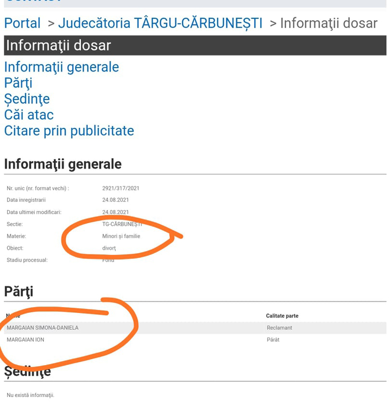 Simona Mărgăian este inculpată într-un dosar penal cu un prejudiciu de 700.000 de euro și a inițiat divorțul față de soțul său, Ion Mărgăian, în august, la Judecătoria Târgu Cărbunești.