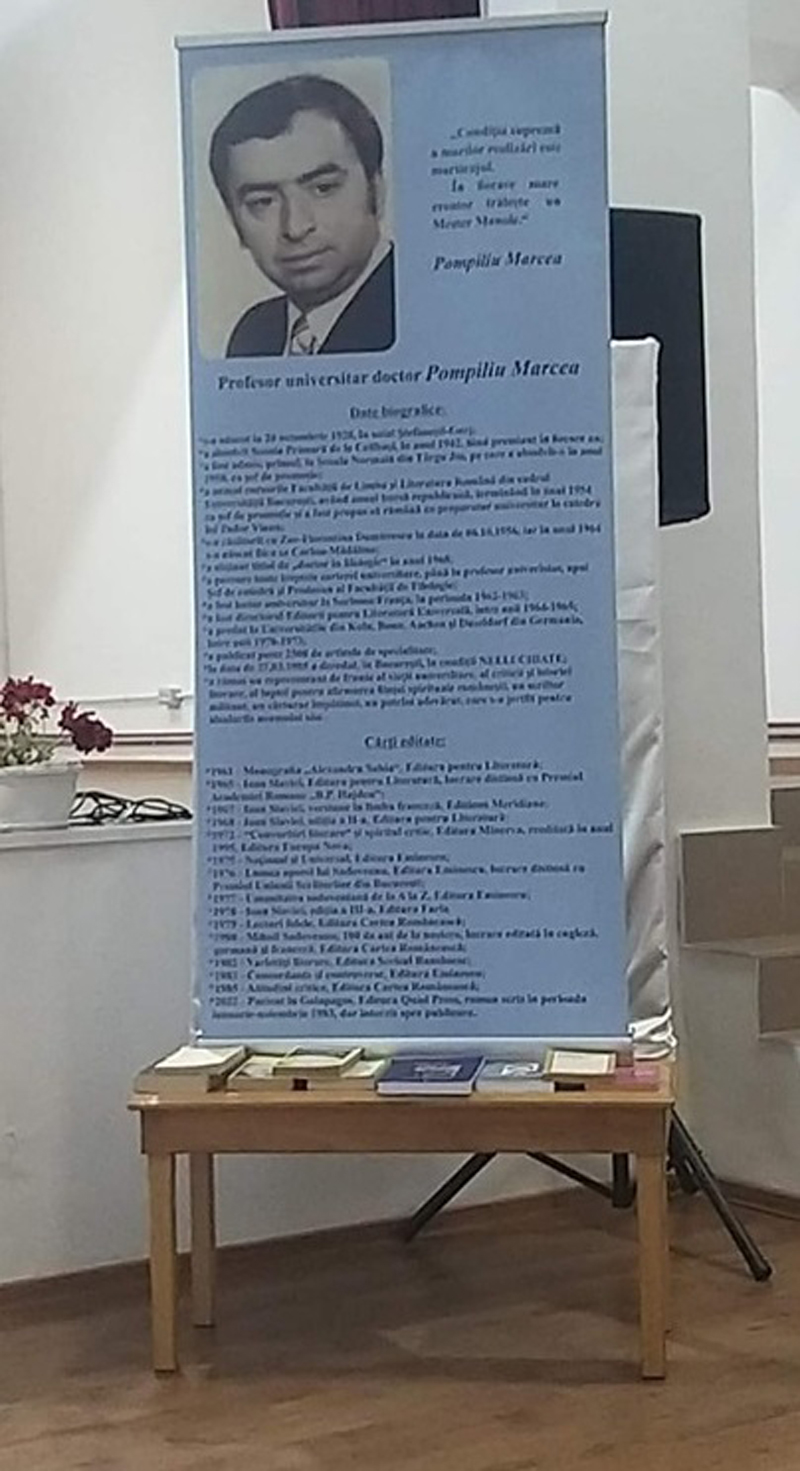 În încheiere, domnul primar Ion Stamatoiu a invitat pe toți cei prezenți în fața institutiei de cultură ce poartă numele scriitorului, unde Primaria și Consiliul Local a depus o coroană de flori alături de cea depusă de familie, la bustul scriitorului, cu ocazia comemorării zilei de naștere și la o fotografie de grup în fața Căminului Cultural “Pompiliu Marcea”. Felicitări organizatorilor și tuturor celor care s-au implicat în buna organizare a Simpozionului!