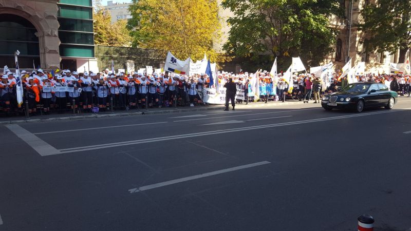 Sindicaliștii de la Serviciul Județean de Ambulanță Gorj fac miting de sensibilizare în fața Parlamentului