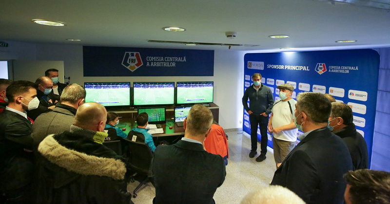 În urma invitației venite din partea Federației Române de Fotbal, prin Comisia Centrală a Arbitrilor, 13 din cele 16 cluburi din Liga 1 au fost reprezentate la un eveniment în care a fost prezentat sistemul VAR. Conducătorii cluburilor din Liga 1 au intrat în camera VAR din sediul CCA și au asistat în timp real la analizarea mai multor situații de joc de către arbitrii aflați în pregătire și s-au familiarizat cu procedura de intervenție. Potrivit frf.ro, întâlnirea s-a mutat apoi în sala ,,Nicolae Dobrin”, unde liderul proiectului VAR, Alexandru Deaconu, le-a explicat în detaliu participanților situațiile în care poate interveni VAR, le-a arătat exemple și dialoguri între arbitri VAR și ,,central” din diferite competiții și a oferit cele mai noi informații despre viitoarele etape din pregătirea arbitrilor români. „Suntem în grafic să terminăm pregătirea arbitrilor la mijlocul lunii iunie, așa cum era planificat, astfel că, începând din iulie, odată cu startul noului sezon, vom putea organiza meciuri cu sistem VAR”, a punctat Alexandru Deaconu. La întâlnire a participat și președintele CCA, Kyros Vassaras. „Am apreciat faptul că toate părțile implicate au fost de acord cu propunerea noastră de a avea un număr de 8 camere care să furnizeze imaginile necesare în camera VAR. Vom prezenta protocolul VAR și toate informațiile necesare tuturor cluburilor din timp, pentru a fi pregătiți la startul noului sezon” a fost mesajul său. Președintele FRF, Răzvan Burleanu, precizase, la începutul săptămânii, că arbitrajul video ar putea fi testat la finala Cupei României din acest sezon. ,,Primul meci care va beneficia cu siguranță de arbitraj VAR va fi Supercupa României din iunie 2022. Și 100% toată ediție din 2022/2023 va beneficia de asistență video. Nu vă ascund că există și scenariul utilizării VAR pentru finala Cupa României, de pe 19 mai, dar nu avem toate elementele de garanție”, a spus Răzvan Burleanu, într-o conferință de presă.