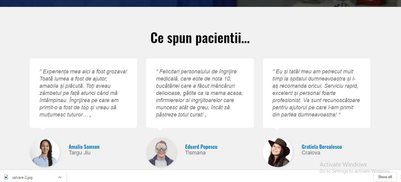 De exemplu, în luna mai 2020, au fost completate și raportate către Biroul de statistică un număr de 329 chestionare de feed-back, mai spun reprezentanții spitalului. „Pe baza acestora, conducerea SJU Târgu-Jiu desfășoară acțiuni menite să îmbunătățească calitatea serviciilor aduse pacienților noștri, precum și condițiile hoteliere din spital. De asemenea, pe site-ul spitalului există posibilitatea ca pacienții să își exprime mulțumirea/nemulțumirea printr-un chestionar de feed-back on-line, prin accesarea butonului «feed-back pacienți» aflat pe pagina principală, la adresa www.spitalgorj.ro”, a mai precizat SJU Târgu-Jiu.
