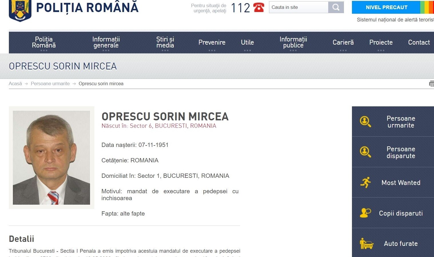 Oprescu ar fi fost localizat cu ajutorul ofițerilor ENFAST – Rețeaua Europeană a Echipelor de Căutare Activă a Urmăriților (EuMostWanted), anunță Digi 24.