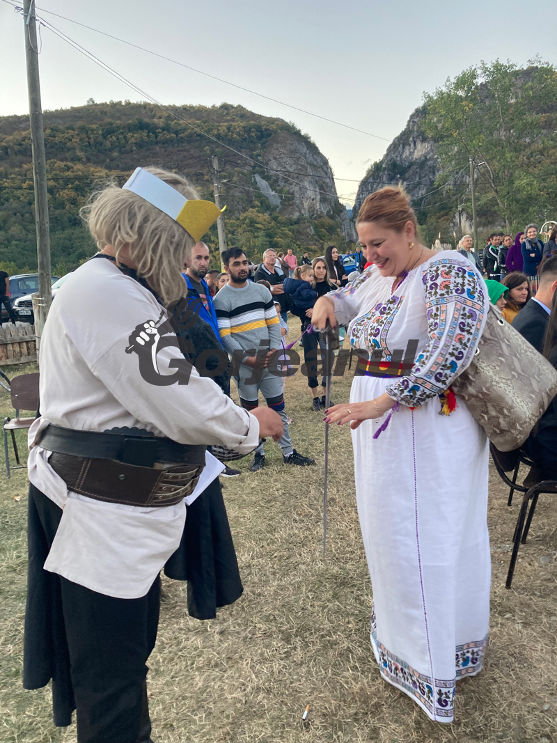 Șoșoacă nu a ezitat să pună mâna pe sabie și să îi salute triumfal pe primarii care de abia și-au mascat zâmbetele. Senatoarea s-a fotografiat cu toți politicienii și pentru o perioadă a și stat alături de aceștia la spectacol. Dacii pe care i-au urmărit cu mult interes localnicii și turiștii reprezintă o asociație din Hunedoara condusă de Aurel Dâncșoreanu. „Am făcut istorie, am fost la facultăți, avem studii academice, nu ne e rușine de ceea ce facem. Aici e un teritoriu binecuvântat de daci dacă ținem cont de acea legendă care circulă de Zamolxe care a trăit aici în peșteră. Sunt multe locații în care au fost el și conducătorii daci, Zamolxe e peste tot. Dacă istoricii nu vin să lămurească aceste legende și să spună o dată pentru totdeauna unde a trăit noi încă mergem cu asociația și spunem că Zamolxe a fost la noi. Dumneavoastră veți spune că a fost aici, la Polovragi, dar asta întărește și binedispune publicul care urmărește aceste evenimente. Noi rămânem impresionați și toată lumea învață câte ceva despre istoria noastră”, a spus reprezentantul asociației Valea Dacilor din Orăștioara de Sus.