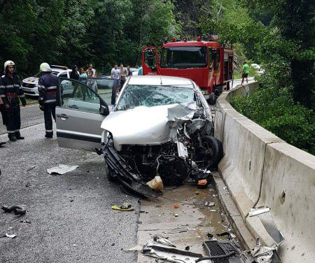 Două persoane, soț și soție, au fost rănite, duminică, după ce mașina în care se aflau s-a ciocnit de un tir, pe Defileul Jiului. Un bătrân de 72 de ani a intrat cu autoturismul pe contrasens, iar șoferul autotrenului nu a mai putut evita impactul. „ISU Gorj a fost solicitat să intervină la o situație de urgență generată de un accident rutier produs la intrare pe Defileul Jiului, zona Vișina, în care au fost implicate un autoturism și un autotren. La fața locului s-au deplasat un echipaj pentru descarcerare din cadrul Gărzii de Intervenție Bumbești-Jiu, două echipaje din cadrul SAJ, precum și echipaje ale IPJ, care au constatat că, în urma impactului, au rezultat două victime care nu erau încarcerate: un bărbat în vârstă de 72 de ani și o femeie în vârstă de 69 de ani”, a declarat Florin Chisim, purtătorul de cuvânt al ISU Gorj.