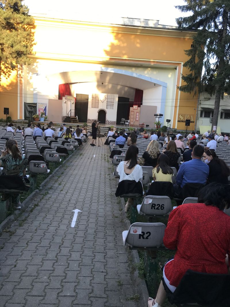 contextul pandemiei de COVID-19. „Sunt condiții foarte bune, ne descurcăm și masca, e bine că se ia temperatura, că nu sunt locurile înghesuite. Important e că ne putem revedea actorii în condiții de siguranță. Astea sunt vremurile și trebuie să ne bucurăm că avem ocazia să mergem la teatru. Ultima dată am fost în martie, chiar înainte să se intre în starea de urgență”, a spus un spectator. Spectacolul în sine a fost cu totul diferit, actorii și-au adaptat replicile la locul în care au jucat piesa, iar pentru asta au fost răsplătiți cu ropote de aplauze. „Este cu totul altfel pentru că, în primul rând, oamenii sunt la distanță atât unii de alții, cât și față de noi. Chiar dacă se joacă o comedie, e greu să simțim publicul pentru că, fiind și cu masca pe față, nu vezi toate reacțiile. E ciudat, dar ne bucurăm că există această întâlnire și că se face schimbul de energie dintre actori și spectatori”, a spus directorul Cosmin Brehuță. După lăsarea întunericului și sâmbătă seara, dar și aseară, în parcul Coloanei Infinitului a început proiecția unui film la care biletele s-au dat aproape instantaneu. Câte 150 au fost puse la bătaie pentru fiecare seară, iar în câteva ore acestea s-au epuizat, mai ales că s-au vândut online.