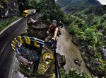 Marius, tânărul din Cluj, supranumit ”Spiderman”, care străbate țara în lung și în lat cu tirul, s-a întors ieri în județul Gorj. Acesta s-a oprit pe Defileul Jiului.