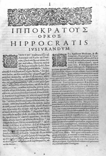 -Nu voi încredinţa nimănui otrăvuri, dacă îmi va cere, şi nu voi îndemna la aşa ceva, tot astfel nu voi încredinţa nici unei femei leacuri care să o ajute să lepede. Îmi voi petrece viaţa şi voi îndeplini meşteşugul în nevinovăţie şi curăţie.
