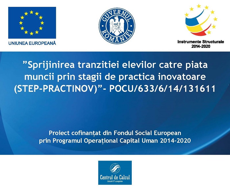 Centrul de Calcul, organizează în parteneriat cu Inspectoratul Școlar Județean Gorj, în cadrul proiectului ”Sprijinirea tranziției elevilor către piața muncii prin stagii de practică inovatoare (STEP-PRACTINOV)”, POCU/633/6/14/131611 un Concurs de meserii în data de 04.06.2022 începând cu ora 9:30.