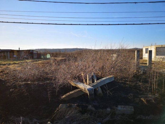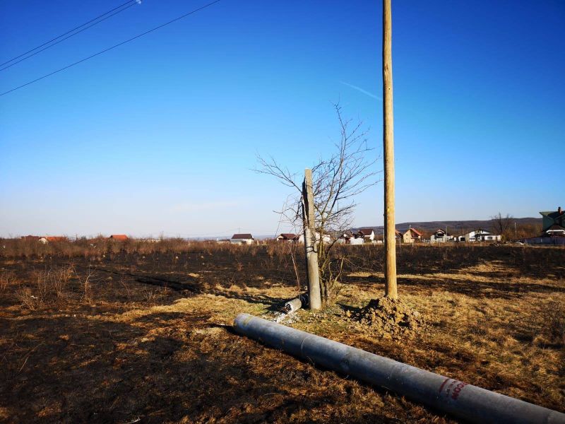 Stâlpul de curent a rămas și duminică în același loc de unde a izbucnit incendiul violent, care s-a propagat până în vecinătatea caselor de la marginea comunei Câlnic.