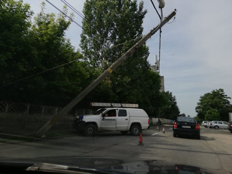 Doi stâlpi de telefonie fixă au fost culcați la pământ după furtuna de sâmbătă, localnicii din satul Hodoreasca neavând nici acum semnal pe telefoanele fixe ori internet.