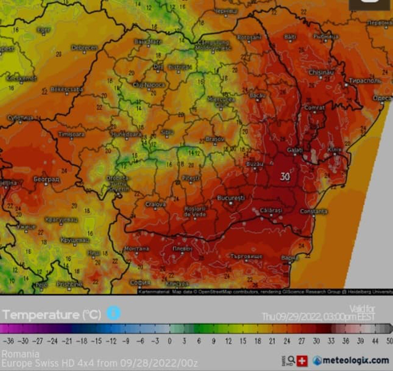 Ziua de azi {Joi, 29 Septembrie 2022} va menține o vreme plăcută, atât din punct de vedere termic, cât și din prisma fenomenelor atribuite instabilității atmosferice.