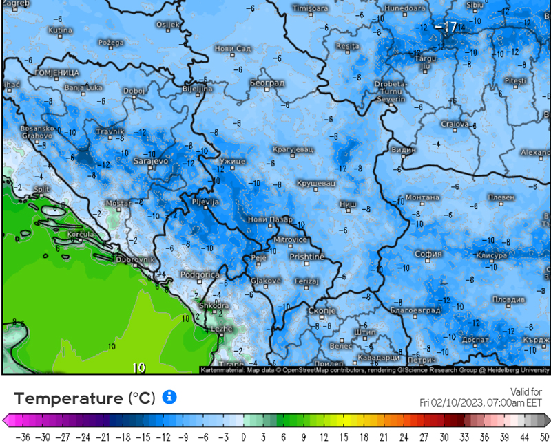 Notă: Sunt șanse ridicate ca temperaturile minime să fie și mai scăzute decât cele prevăzute de modelele meteorologice analizate, stratul de zăpadă care încă persistă în cea mai mare parte a jumătății sudice din teritoriul gorjenesc, dar și în est, favorizând un proces semnificativ de răcire, un alt factor important fiind și presiunea atmosferică ridicată, datorată unui câmp anticiclonic, ce va menține calmul atmosferic o bună perioadă de acum încolo.