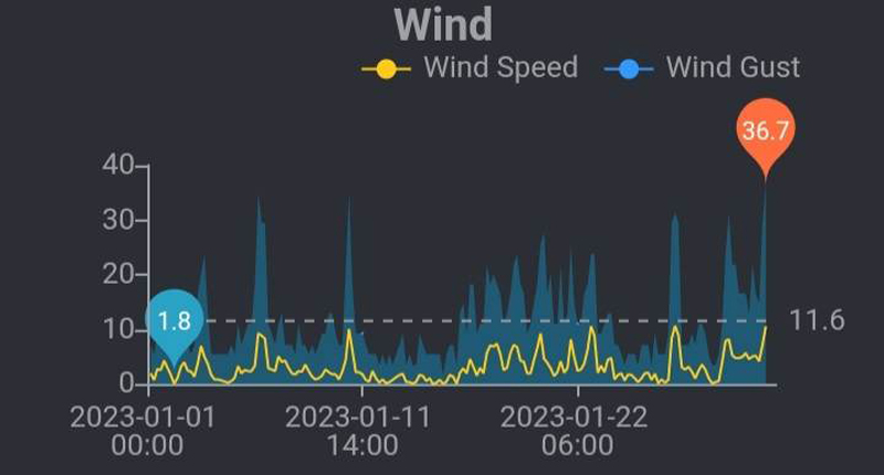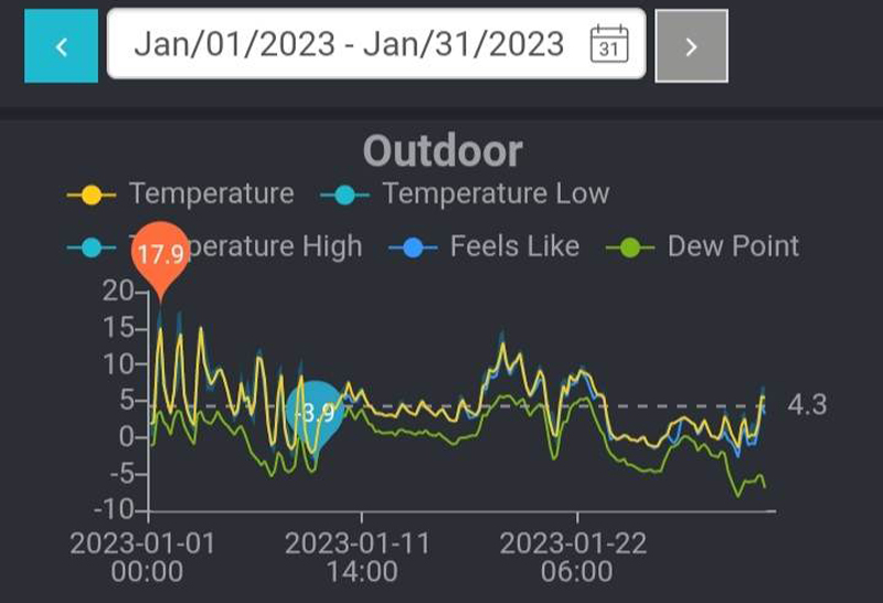 * Temperatura maximă lunară: 17,9°C {1 Ianuarie 2023}