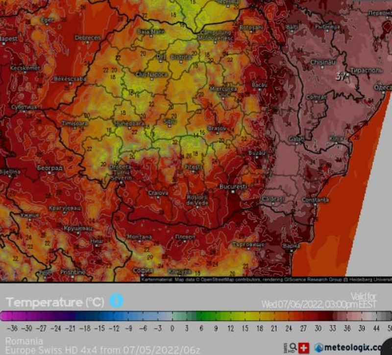 * Pe parcursul zilei de azi { Miercuri, 6 Iulie 2022}, județul nostru va trece printr-un mult așteptat proces de răcire, ce va mai atenua regimul termic, astfel încât maximele termice se vor încadra, per ansamblu, între: 20°C { în zona montană}…30°C { de-a lungul ariei deluroase și la câmpie, în sudul teritoriului}.