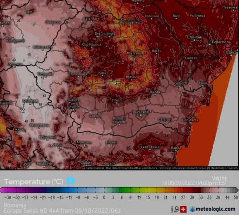 Astfel, pe parcursul zilei de azi {Vineri, 19 August 2022}, vremea va redeveni călduroasă și caniculară pe arii relativ extinse în județ, regimul termic maxim urmând să se încadreze per ansamblu între: 20°C {în zonele montane ; posibil mai răcoare la peste 2500 m}…34- 35°C { în arealele deluroase cu altitudini mai mici și în sudul teritoriului, în zonele de câmpie}.