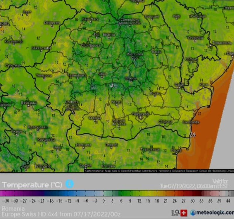 În ceea ce privește noaptea {18- 19 Iulie 2022}, văzduhul se va menține predominant senin, iar minimele termice vor scădea simțitor, urmând să se încadreze per ansamblu între: 0°C {Vf. Parângu Mare}…14-15°C {în zonele joase, din sudul teritoriului}!