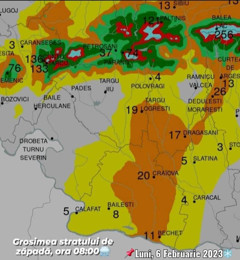 Județul Gorj – ,,Polul frigului” din țară, în privința temperaturilor minime înregistrate în zonele joase de relief, locuibile, cu o valoare termică de -19,3°C, la stația meteorologică ANM- Târgu Logrești, unde grosimea stratului de zăpadă atinge la ora actuală 19 cm.