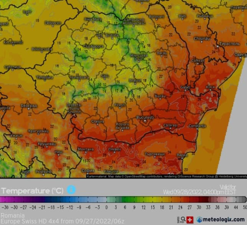 Notă: Trecător, pe durata nopții { 28-29 Septembrie 2022 se pot semnala scurte reprize de ploaie slabă și în restul județului nostru.