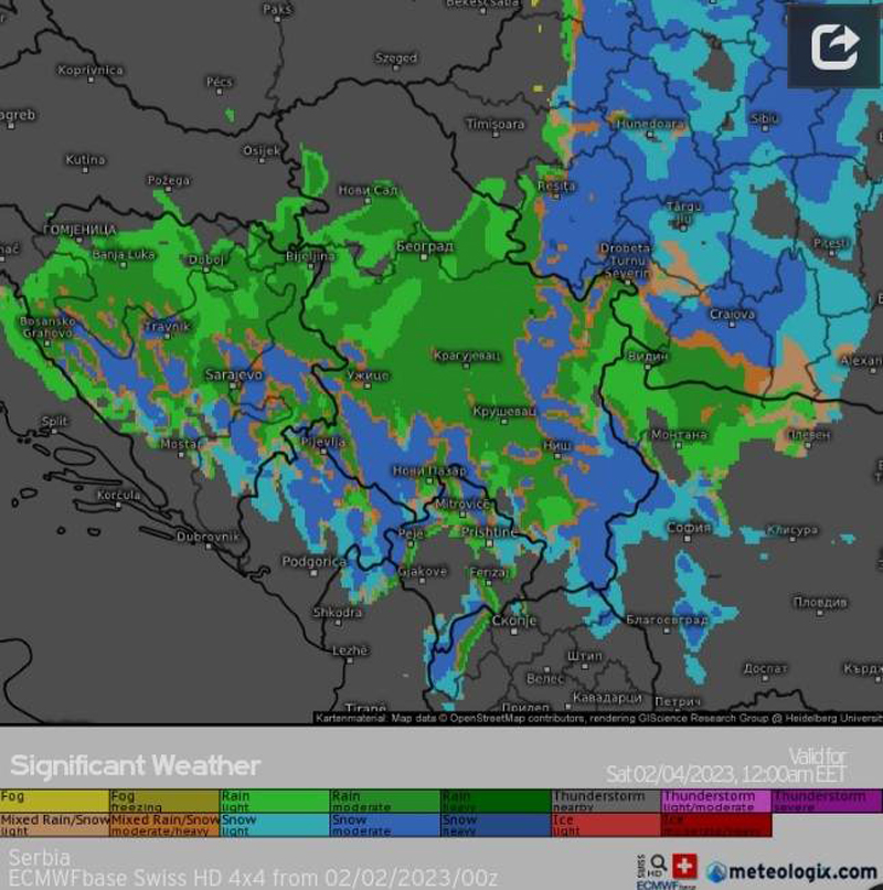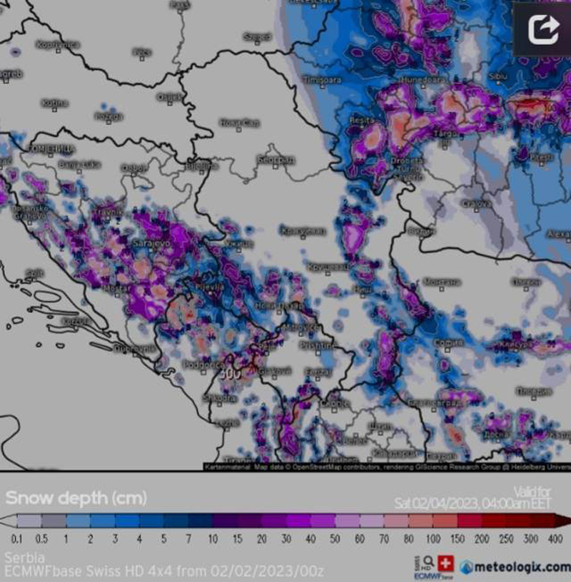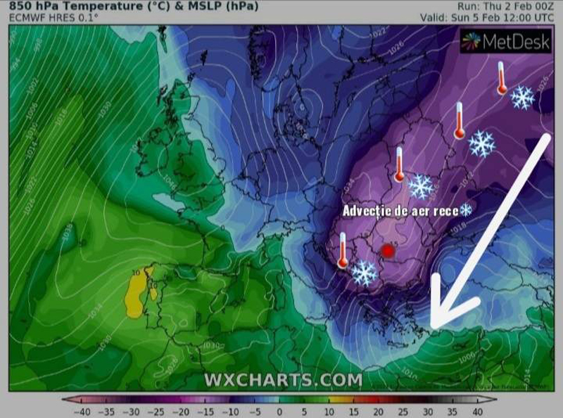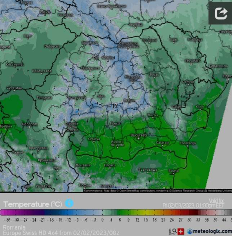 Notă: Pe parcursul nopții {3-4 Februarie 2023} se vor semnala averse slabe cantitativ de ninsoare, ce vor putea la rândul lor să depună un efemer strat de nea, cu grosimi de 1..2 cm, cu o probabilitate mai ridicată în zonele subcarpatice.
