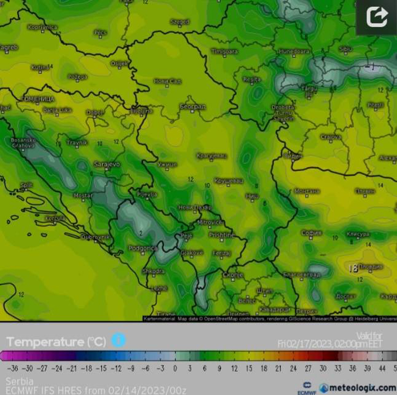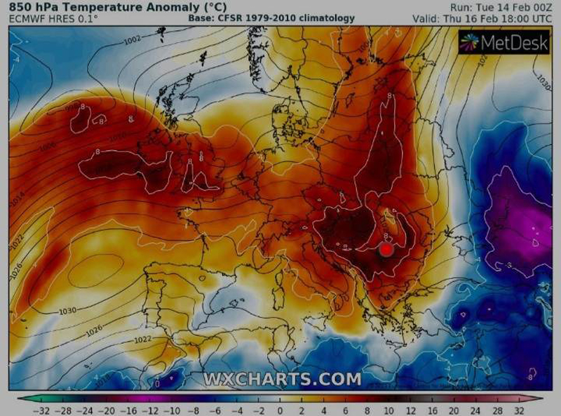 Din punct de vedere al regimului termic, valorile de temperatură se vor menține în întregul interval peste medie, chiar si cu +10°C peste media climatologică, la amiaza zilei de vineri putând să se atingă maxime termice la nivel de județ, de 14..15°C, în sudul Gorjului, conform ultimelor estimări.