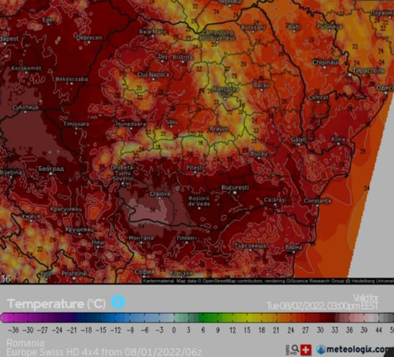 Astfel, pe parcursul zilei de azi {Marți, 2 August 2022}, regimul termic maxim se va încadra per ansamblu între: 20°C {în zona montană, posibil mai răcoare la peste 2000 m}…32- 33°C {în arealele deluroase, de podiș și la câmpie}!