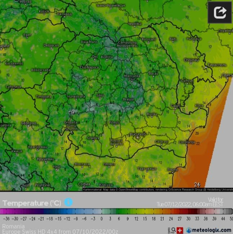 Notă: Nu este exclus ca în Munții Parâng și Godeanu sa se înregistreze chiar valori ușor sub 0°C, ca excepție!