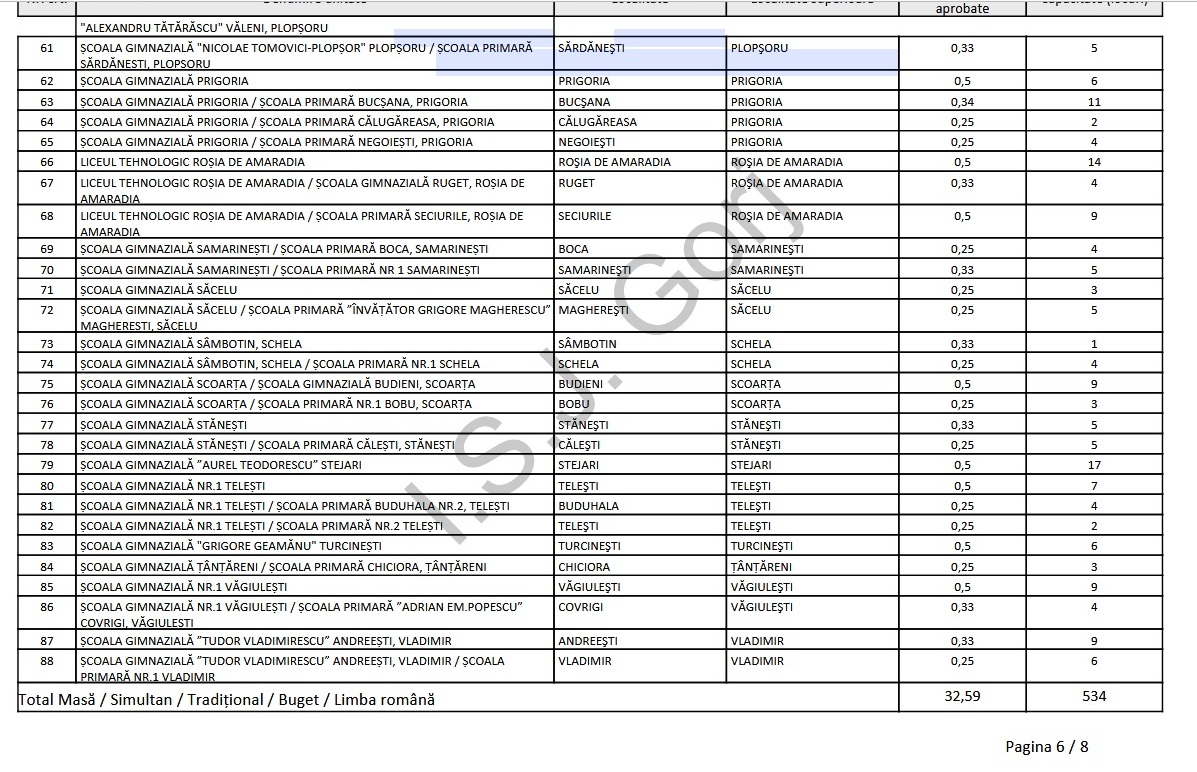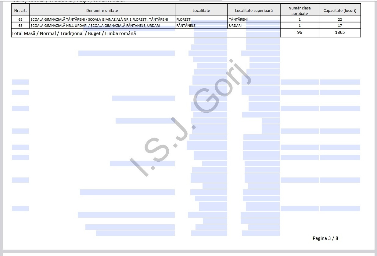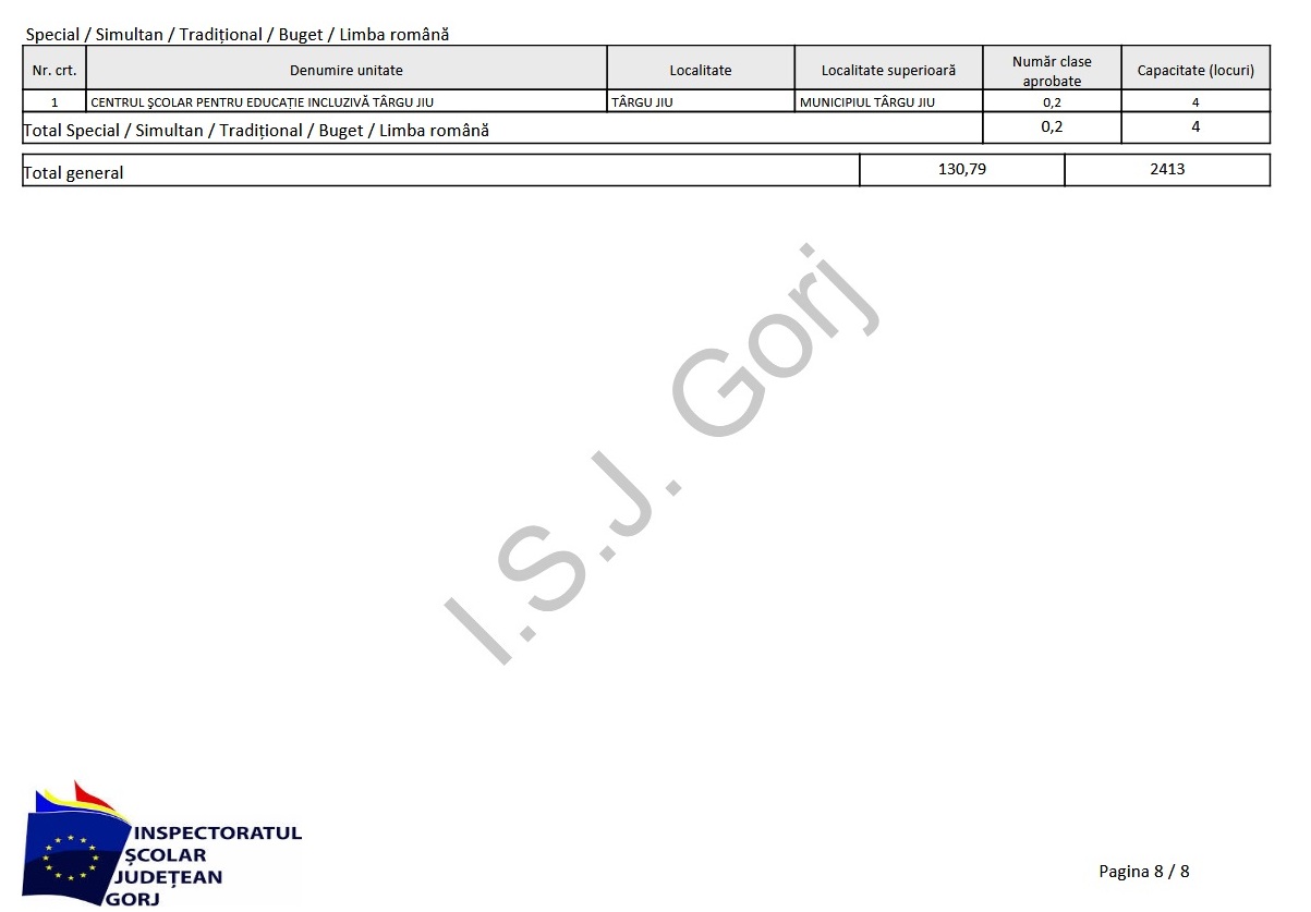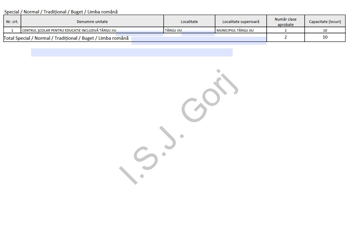 În schimb, la Liceul cu Program Sportiv, Liceul de Arte „Constantin Brăiloiu” și Liceul Teologic, dar și la nivelul școlilor „Ecaterina Teodoroiu” și nr.7 (Vădeni) a fost aprobată câte o singură clasă, cu 22 de locuri.