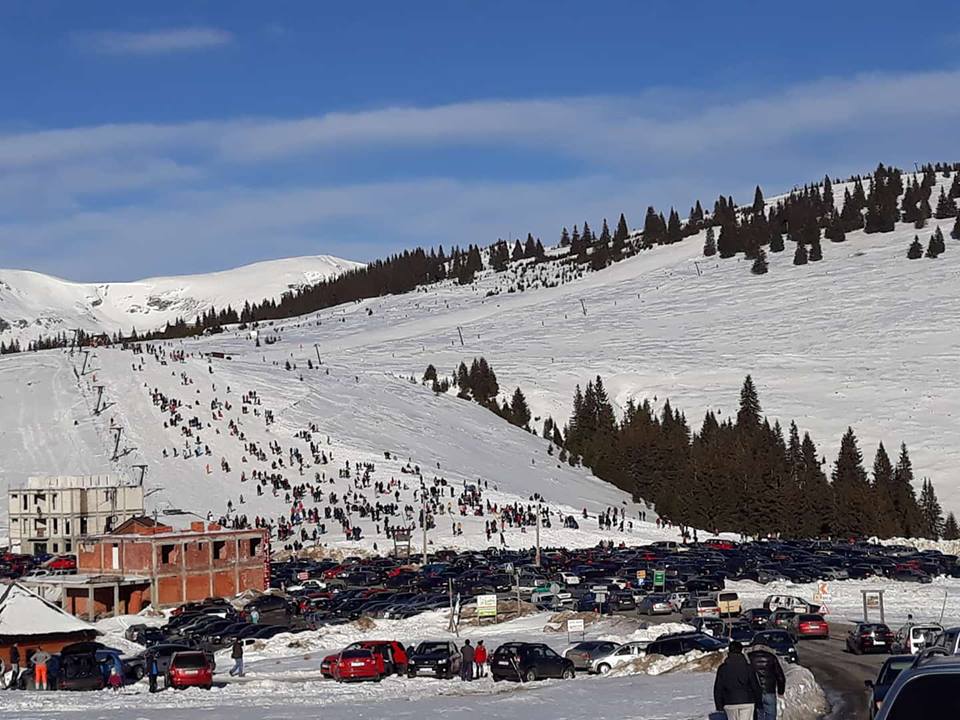 Mii de turişti se relaxează la Rânca. Mulţi dintre ei au ales să se oprească pe pârtia de la intrarea în staţiunea.