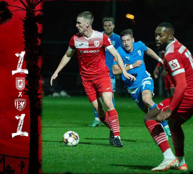Universitatea Craiova a înregistrat o remiză în primul joc de verificare din Antalya. Alb-albaştrii au terminat la egalitate, 1-1 cu Greifswalder, o formaţie care activează în liga a patra din Germania. S-a văzut diferența dintre eșaloane doar în prima repriză, când doljenii au fost peste adversari. Alb-albaştrii au deschis scorul prin Andrei Ivan, dintr-un penalti obţinut tot de el (`8). Tot o fază fixă a adus golul nemților. Cabrera a înscris, peste 5 minute, dintr-o lovitură liberă, cu concursul “zidului” oltean. Adversarii au părut mai activi în partea secundă, una în care “eternele” probleme de la mijlocul terenului au măcinat-o pe Universitatea. Chiar și așa, jucătorii Craiovei au considerat că a fost un test bun. „A fost un test foarte bun pentru noi, aveam nevoie de acest meci. Ușor-ușor ne vom da drumul la joc și vom arăta foarte bine în prima etapă. Am întâlnit o echipă arțăgoasă, și-a dorit foarte mult să câștige. Ne bucurăm că am făcut un joc bun. Suntem în cantonament, sunt meciuri de pregătire. Știți foarte bine că aici nu punem preț pe rezultat, ne pregătim și asta contează. În campionat va fi altceva”, a spus Ştefan Baiaram. „I-am simțit foarte puternici, orice echipă din Germania cu care jucăm în amicale este foarte puternică. Alergau bine, ne-au pus mari probleme, dar este normal. Suntem în perioada de pregătire, am avut câte două antrenamente pe zi. Cred că majoritatea avem febră peste tot, suntem obosiți. A fost un meci bun, un antrenament bun”, a declarat Alexandru Mateiu.