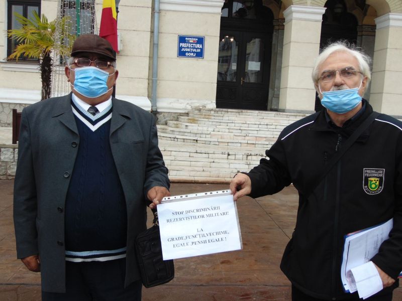Miercuri, 4 noiembrie 2020, reprezentanții asociațiilor pensionarilor militari din județul Gorj, la inițiativa Sindicatului Cadrelor Militare Disponibilizate (S.C.M.D.), au făcut o serie de demersuri pentru aplicarea Legii pensiilor militare de stat (Legea nr. 223/2015), așa cum a fost ea promulgată de Președintele României și renunțarea la forma așa-zisă ,,consolidată” ca urmare a OUG nr.57/2015, OUG nr. 59/2017, OUG114/2018 etc care au mutilat legea și au făcut să apară grave discrepanțe între pensionarii militari. Această acțiune s-a alăturat manifestărilor de acest gen desfășurate în țară și capitală.