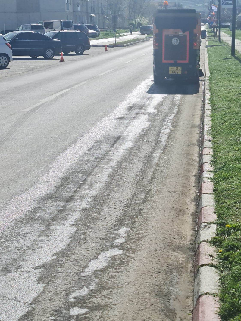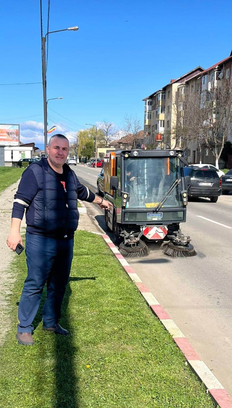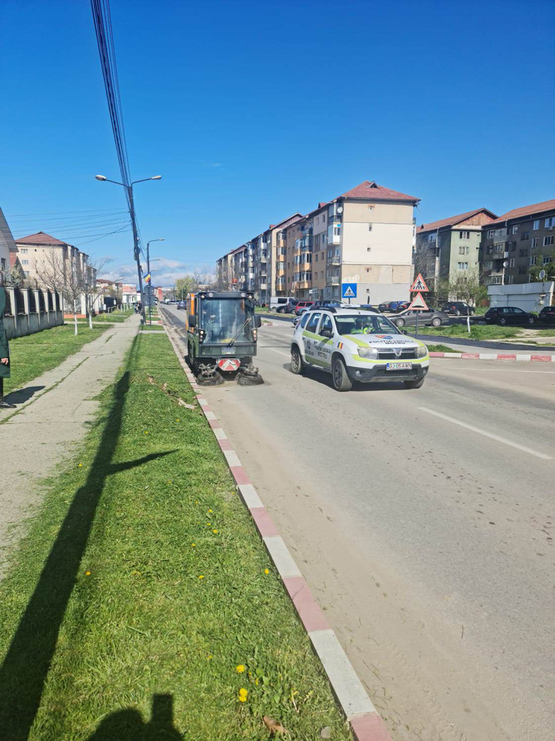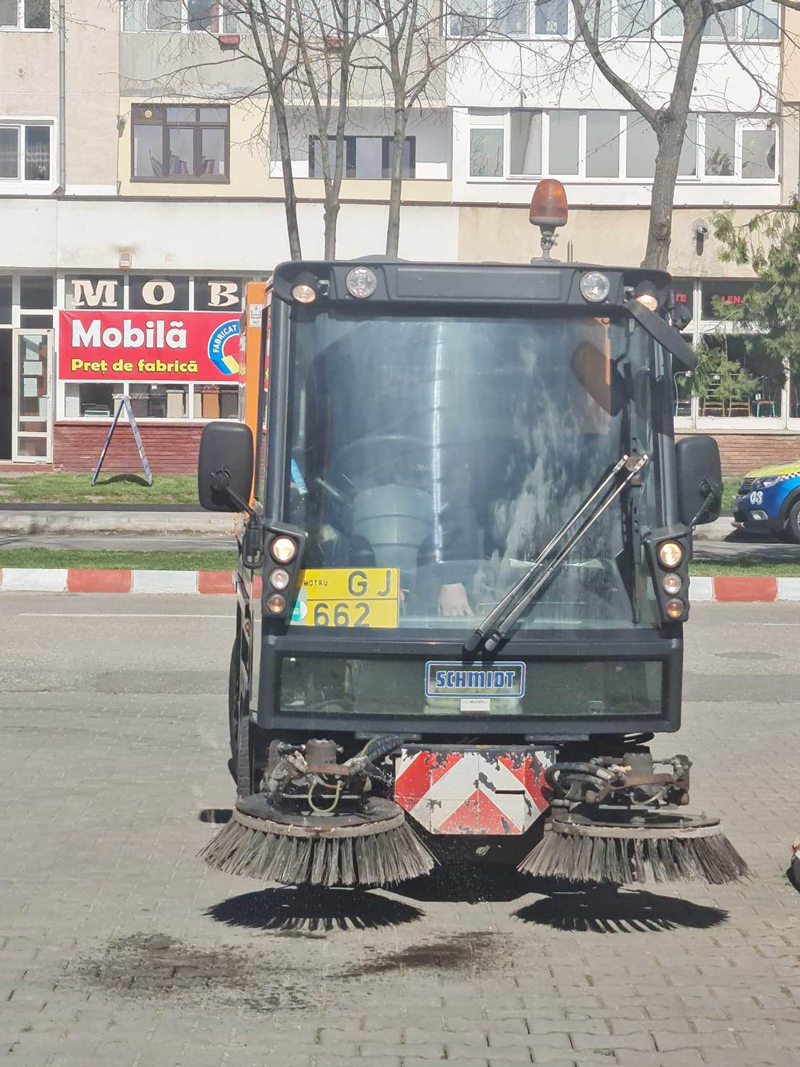 Miercuri a fost văzută pe străzile din Motru o mașină de măturat care adună praful și resturile de pe marginea drumului, în același timp stropind pentru a evita ridicarea prafului.