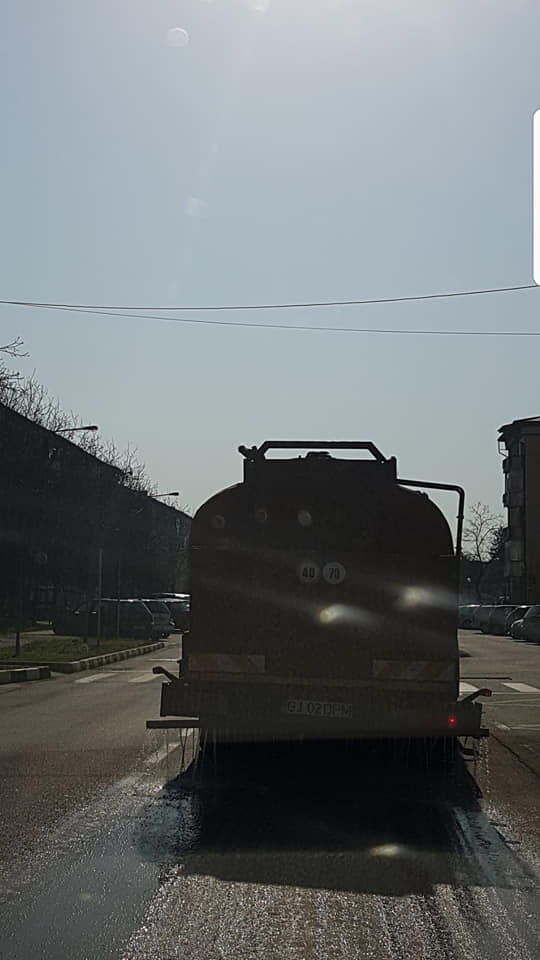 Străzile și aleile din municipiul Motru au fost spălate, în această dimineață, cu soluție dezinfectantă pe bază de clor. Nu au scăpat de dezinfecție nici trotuarele. O cisternă și trei pulverizatoare vor face periodic această operațiune, în cauză fiind folosiți salariații Direcției Publice Motru și mașina unității.