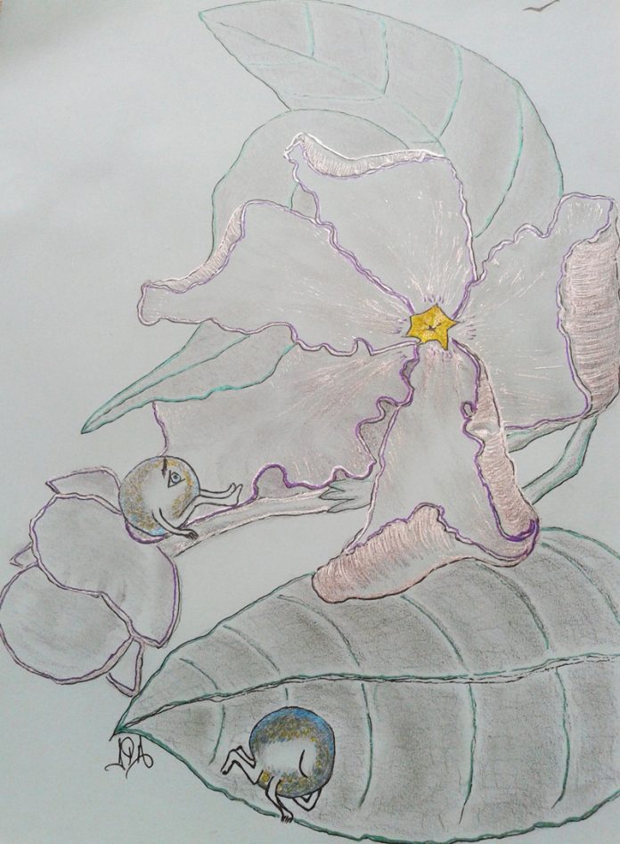 Se trezise dis-de-dimineață, pe o petală delicată de floare… Se întinse, preluung, căscând cu mulțumire, și privi cu entuziasm în juru-i… Împrejurimi de un verde intens și flori minunat colorate cât vedeai cu ochii… ,,Ce frumusețe”, își spuse, oglindind o clipă totul… ,,Oare mai în jos ce o fi fiind?”, scrută el, lungindu-se… Însă, oricât încercă, nu văzu nimic … ,,Ce ar fi dacă aș părăsi floarea și m-aș coborî?”…spuse, aplecându-se cât putu… Sub floarea pe care odihnea el era o frunză mai mică și ascuțită, iar pe ea, un alt strop rotund și încă adormit… ,,Trezește-te, somnorosule, și hai să explorăm împrejurimile!”, strigă voios stropul nostru… Cel adormit se trezi și se supără: ,,De ce strigi? Dacă tu nu dormi, de ce nu-l lași pe altul s-o facă?” Stropul cel curios de rouă ar fi vrut să îl îmbuneze, însă nu găsi nimic să îi spună… De ce o făcuse? Păăi… pentru că el dorea să știe ce îl înconjura…