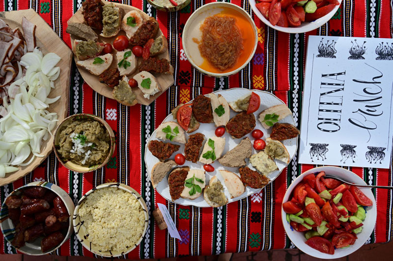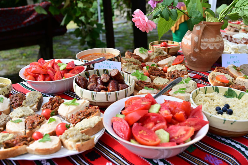 Nu au lipsit din peisaj preparate locale, unele dintre ele simple, dar pline de savoare. Odată început ospățul cu brânză de oi, șuncă de casă, salată de fasole verde, pate de casă, legume proaspete din grădină, zacuscă de mânătărci și o fasole bătută cu usturoi, și-a găsit locul o varză tradițională cu cârnați de la garniță. După o mică pauză de siestă, chisălița de prune și vișine, îngroșată cu mălai, a stârnit curiozitatea tuturor, iar dovleacul cu lapte și vanilie a desăvârșit experiența gustativă. Cornulețele cu rahat și lubeniță rece au completat praznicul pregătit cu mare drag de către echipa de prieteni reunită: angajați ai asociației, voluntari, colaboratori, bunici, vecini, pe scurt comunitatea locală. A fost momentul perfect pentru transferul de obiceiuri culinare, rețete și tehnici de gătit între generația care a pregătit mâncare pentru a hrăni familia și generațiile care simt că aceste lucruri nu trebuie să se piardă fiindcă ele stau la baza identității noastre culturale.