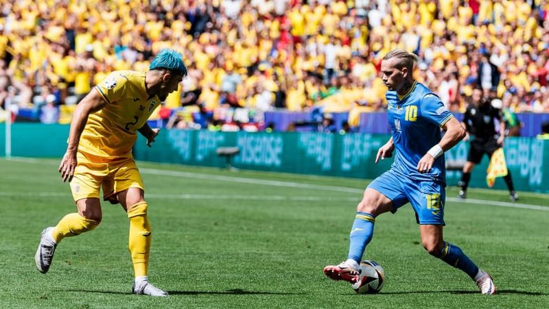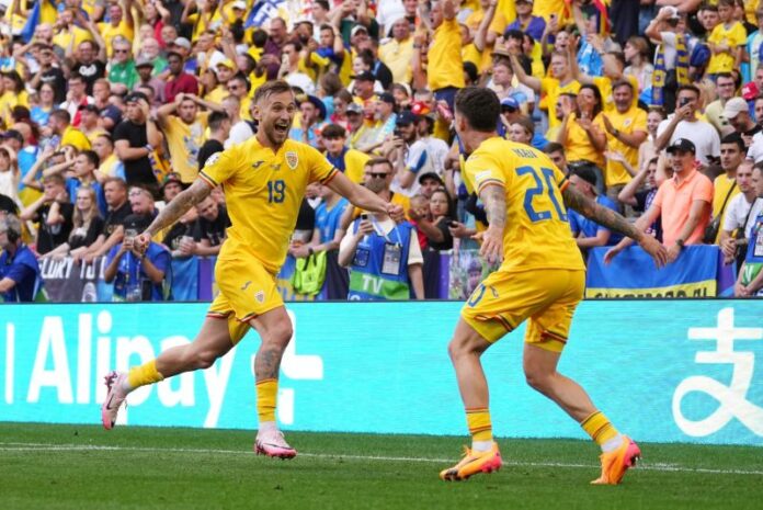 Naţionala de fotbal a României a debutat cu o victorie la EURO 2024, 3-0 (1-0) cu Ucraina. Partida s-a disputat, luni, pe Football Arena din Munchen, și a contat pentru Grupa E. Tricolorii au reuşit un succes istoric, al doilea al lor la Campionatul European, la 24 de ani de la precedentul (3-2 cu Anglia). Nicolae Stanciu (29), Răzvan Marin (53) şi Denis Drăguş (57) au punctat pentru reprezentativa condusă de Edward Iordănescu. Ucraina a avut o posesie superioară (66%-34%), dar nu a putut străpunge defensiva compactă a tricolorilor, cei din urmă având ocaziile mai importante în prima repriză, inclusiv o bară, direct din corner (39), a lui Stanciu. De asemenea, România a dat mai multe şuturi pe poartă (5-2).