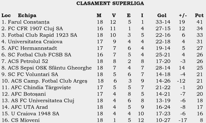 NOTĂ: Restanța FCSB – CFR se va disputa joi, 15 decembrie, ora 20.00.