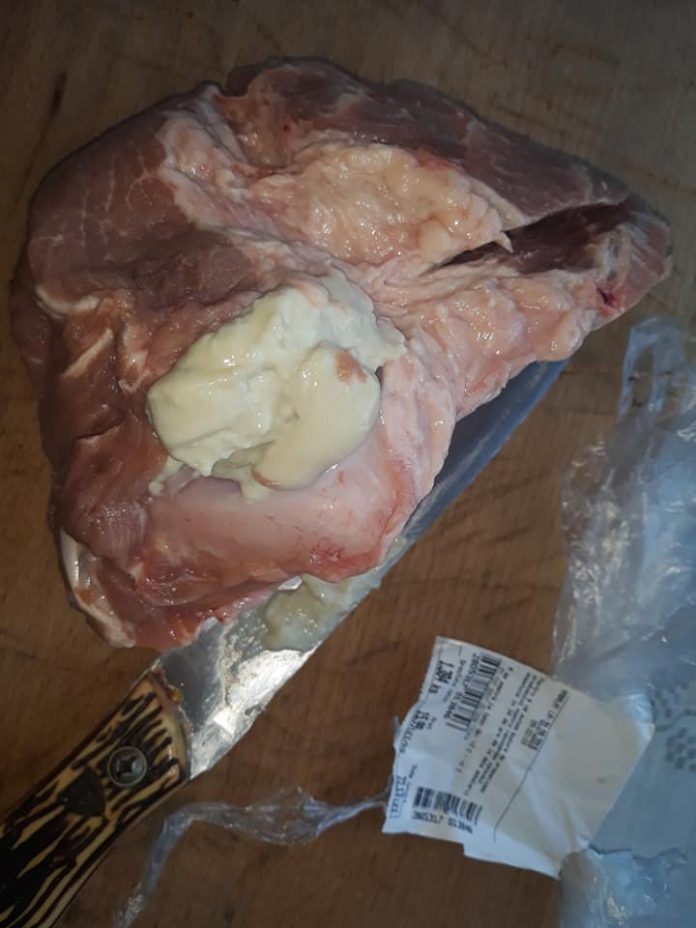 Potrivit şefului Direcţiei Sanitar-Veterinare şi pentru Siguranţa Alimentelor (DSVSA) Gorj, Nicolae Călescu, produsul respectiv provine din Germania şi există posibilitatea ca abcesul cu puroi depistat în carne să provină de la o contuzie sau o injecţie suferită de porc. „Luni, s-a prezentat la sediul DSVSA un cetăţean cu o probă de carne, respectiv 1,3 kilograme de ceafă cumpărată de la o unitate din Târgu-Jiu, făcând o sesizare că în urma secţiunii a constatat că era în interiorul bucăţii de carne un abces plin de puroi. Ne-a prezentat şi o filmare, într-adevăr aşa era. Am constituit imediat o echipă formată din doi inspectori, s-au deplasat la faţa locului, am verificat situaţia, din acel lot nu mai era acel produs. Am verificat documentele şi toate avizele în cadrul unităţii şi s-a aplicat o sancţiune de 12.000 de lei”, a declarat, marți, Nicolae Călescu.