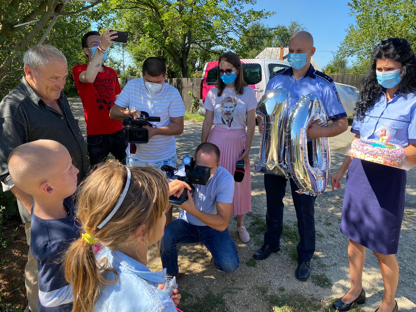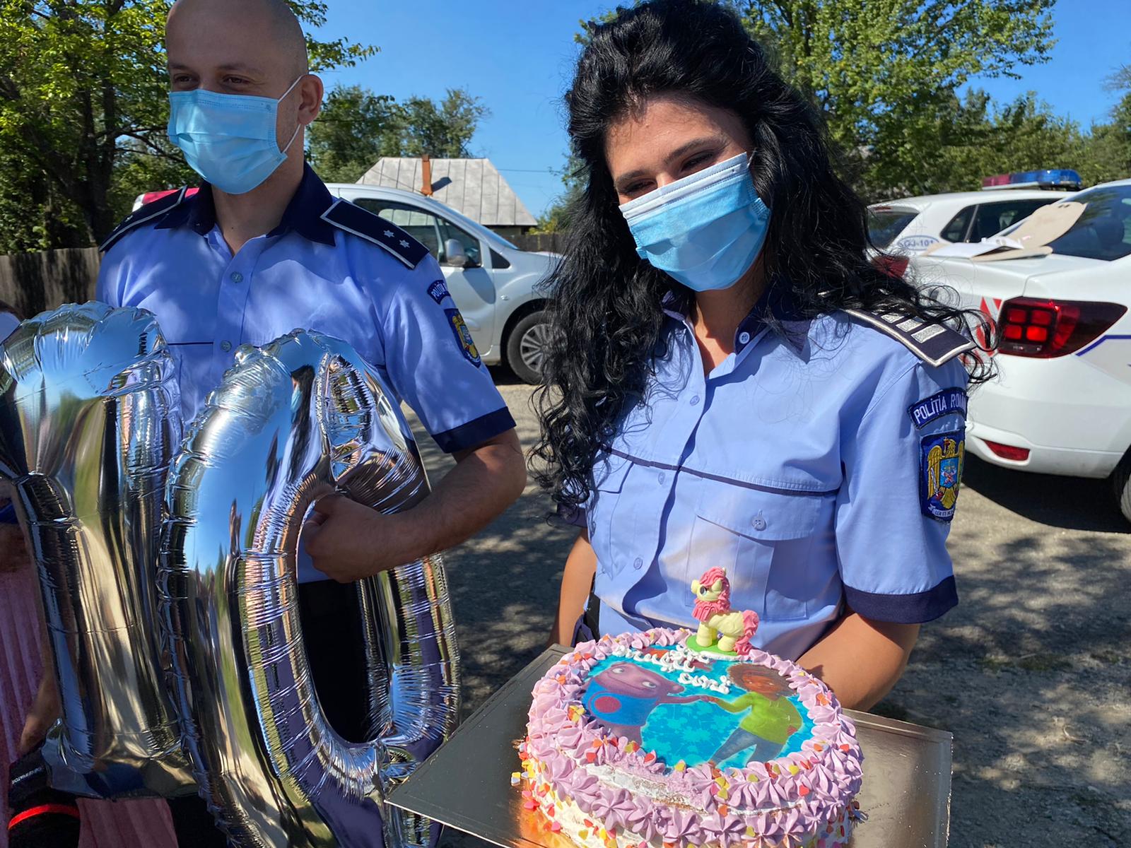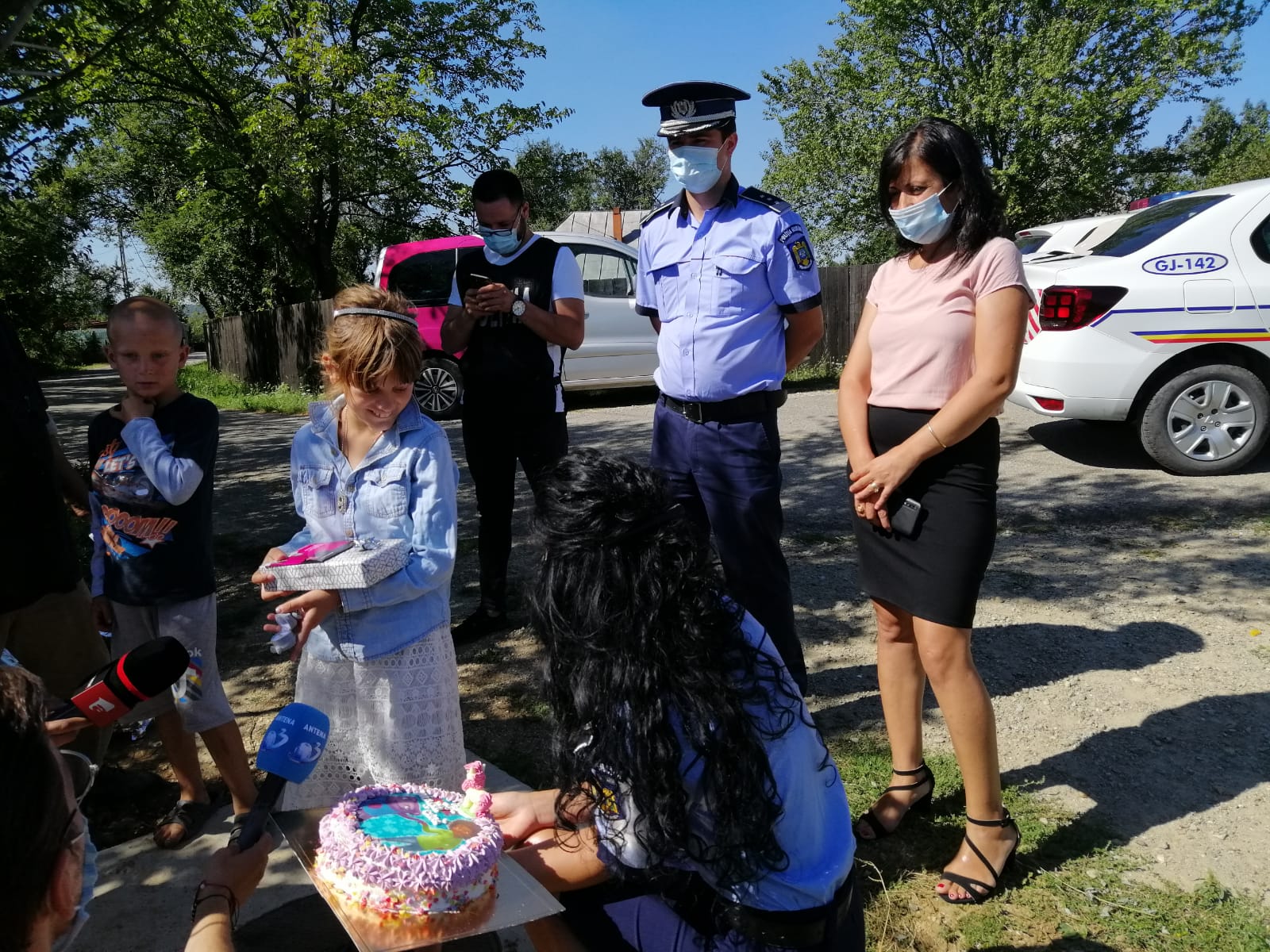 O fetiță care a împlinit astăzi zece ani a avut parte de o surpriză din partea poliţiştilor gorjeni. Roxana, din comuna Scoarța, a primit un tort, o tabletă și cercei. Și fratele fetiței a primit o tabletă.