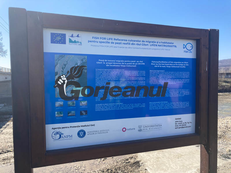 Uniunea Europeană finanțează cu circa 1,5 milioane de euro un amplu proiect pentru salvarea peștilor din apele Gilortului, dar și pentru protejarea și refacerea malurilor râului, finanțarea derulându-se prin intermediul Agenției de Protecție a Mediului Gorj.