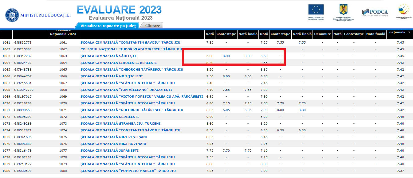 Unele dintre notele contestate au fost crescute semnificativ în urma reevaluării lucrărilor. Spre exemplu, un absolvent al Școlii Gimnaziale Săulești care avea înainte de contestații nota 5.00 la Română a primit 8.30 după recorectare. O creștere de peste trei puncte!
