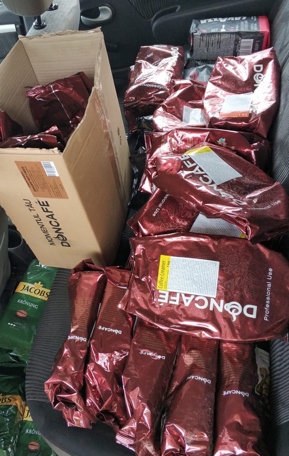 Sute de sticle de suc și zeci de kilograme de cafea, confiscate în urma unui control în trafic
