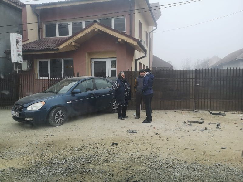 Mașinile au fost toate destul de avariate, una dintre ele intrând chiar în poarta salonului respectiv.