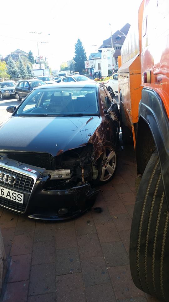 Tamponare la Târgu-Jiu! O vidanjă s-a ciocnit cu un autoturism