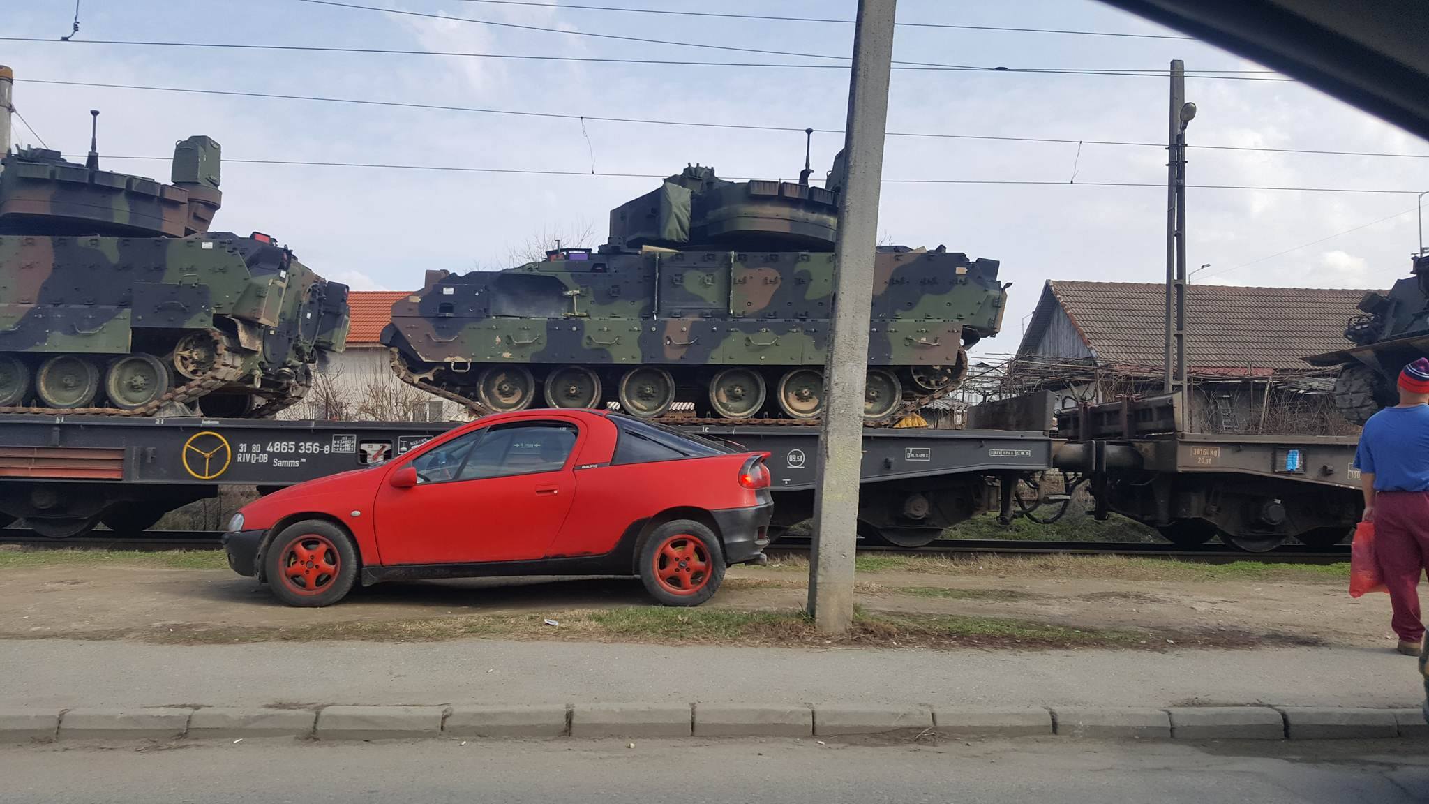 Îngrijorare printre târgujieni, după ce astăzi calea ferată a fost traversată de un tren care transporta un șir de tancuri. Imaginile au fost postate pe site-urile de socializare.